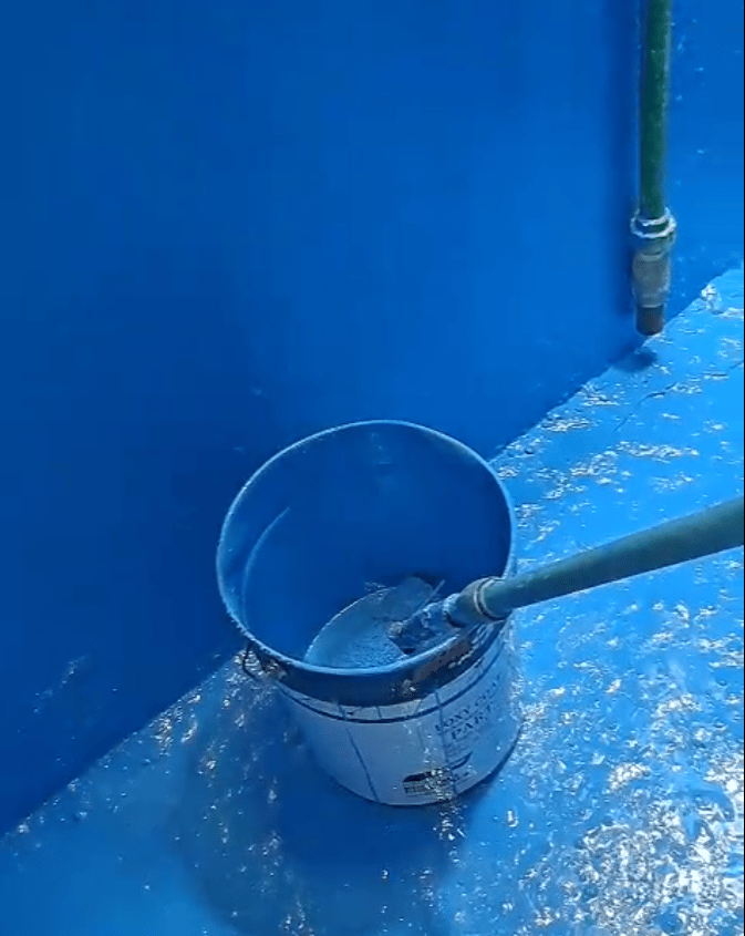 الاختبار النهائي: نترك العزل ليجف تماماً، ثم نقوم بتعبئة الخزان واختباره لمدة 48 ساعة للتأكد من عدم وجود أي تسريب.